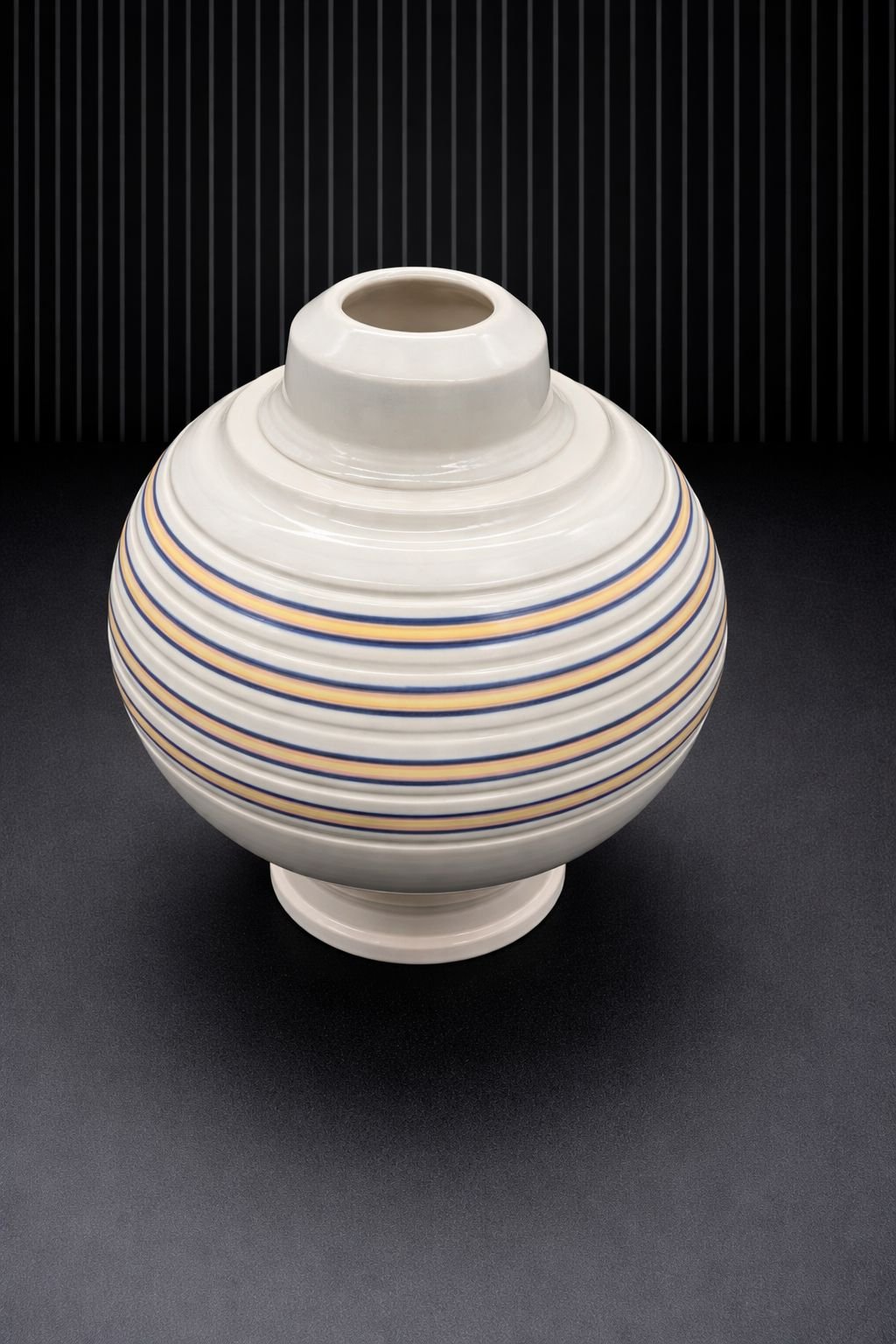 Inspired by precise geometry and clean lines, this piece balances form and function. Concentric bands create a rhythmic pattern, offering a refined, modern aesthetic. Ideal as a statement accent or functional piece.